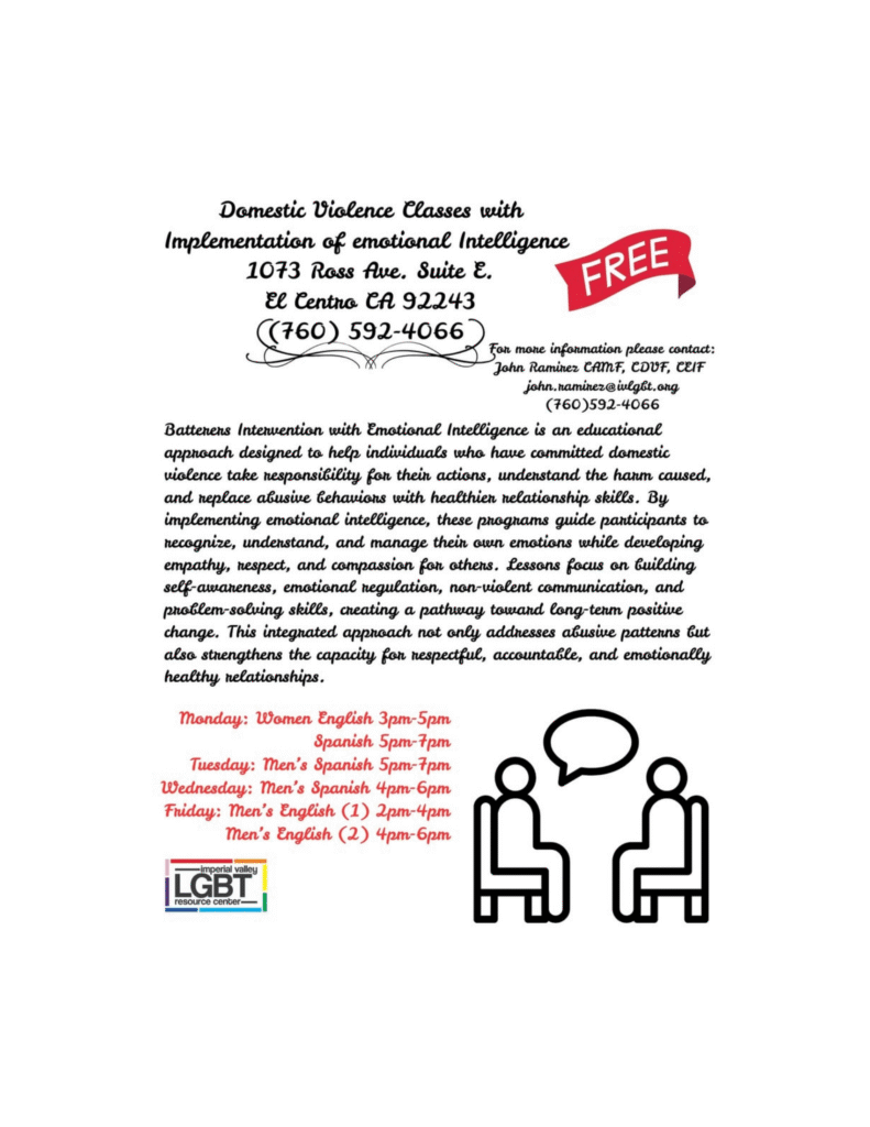 This court-accepted program is designed to support individuals in recognizing the early signs of anger and teaches effective strategies to manage emotions, resolve conflict, and build healthier relationships. Classes are held weekly and are structured to provide both accountability and guidance in a supportive, educational environment.